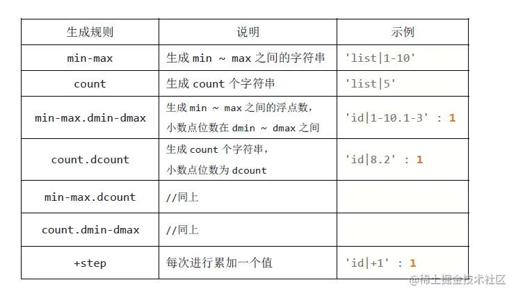 '属性名 | 生成规则 ' :属性值