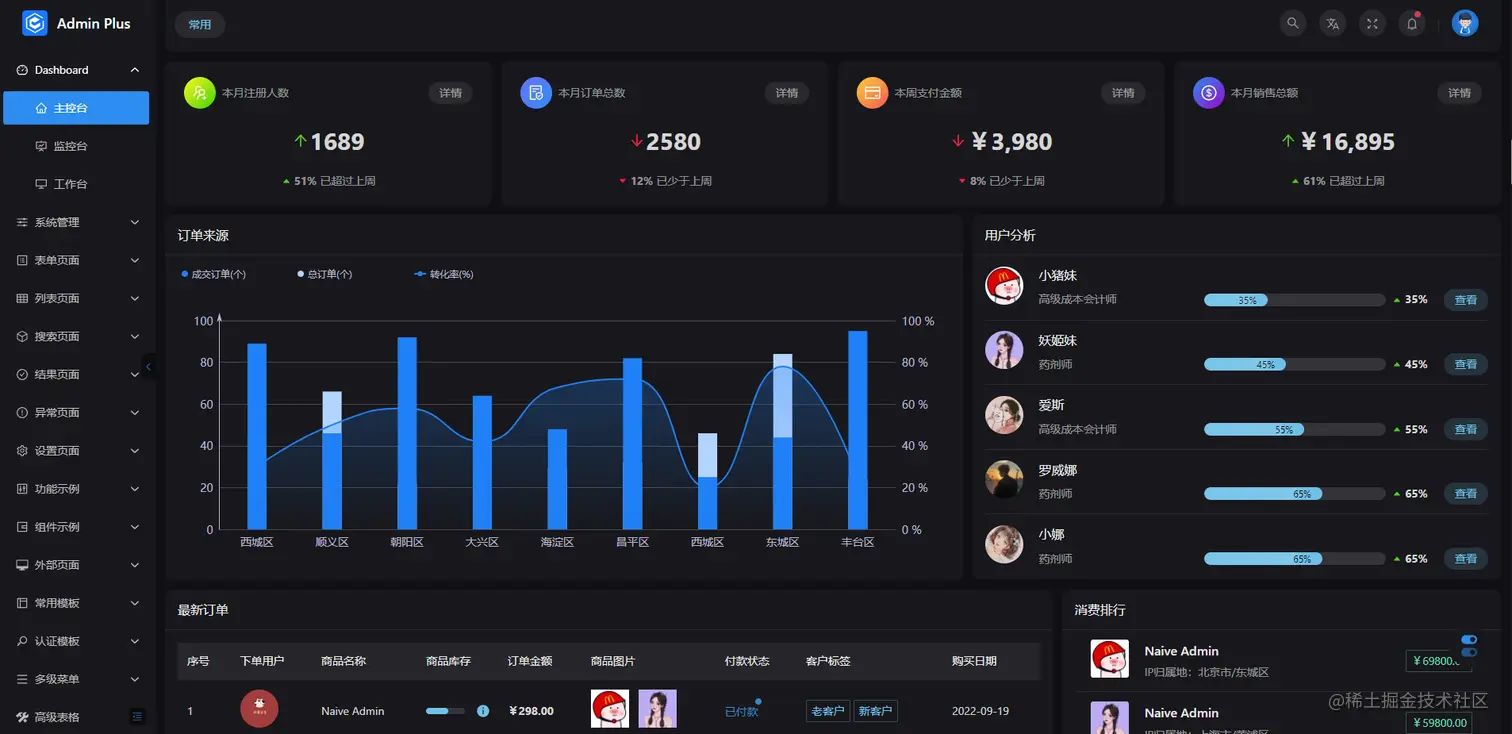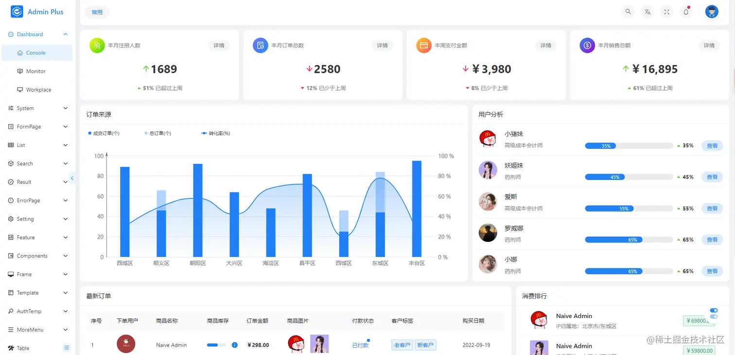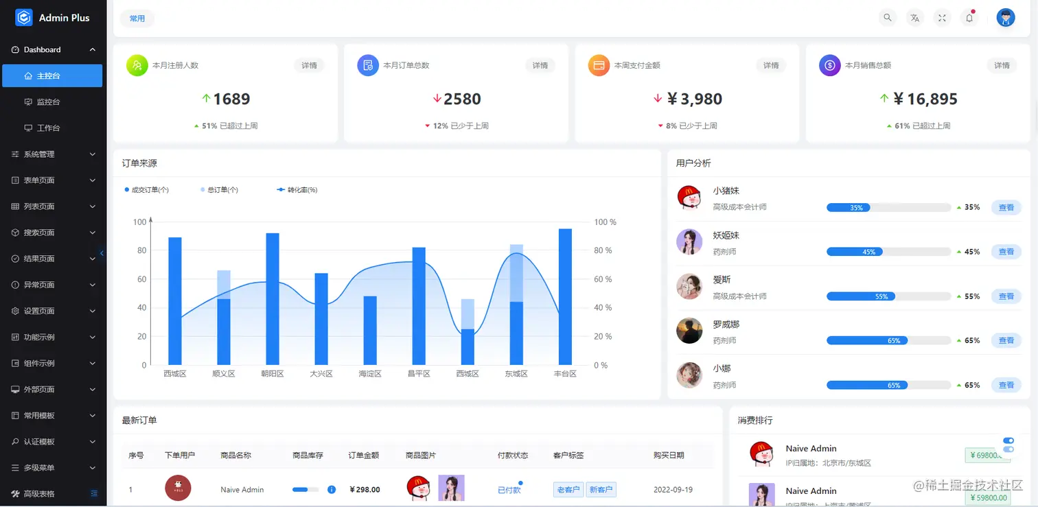 Naive Admin Pro Plus 是一个全新版本,在现有产品基础上,我们重新设计,精雕细琢,日夜奋战,终于又迎来了正式发布上线!