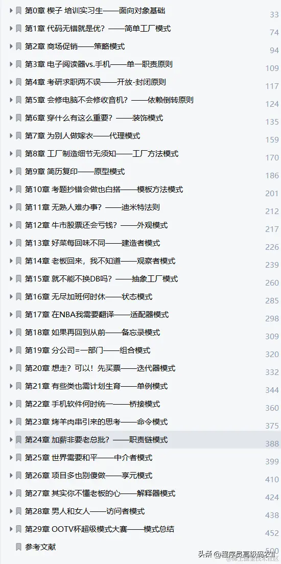 本文适合编程初学者或希望在面向对象编程上有所提高的开发人员阅读,也非常适合Java程序员用来重构编程思想,另外,社会培训师生、院校师生也很适合阅读本文。 本次的内容大致的就介绍到这里拉,由于内容太多,只能简单介绍到这里,需要这份资料的朋友们 -点击此处 即可