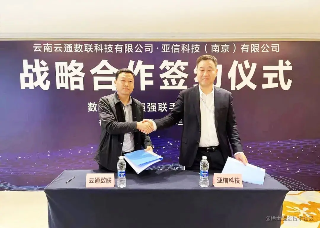 展会期间,亚信科技交通行业总经理王定银与云通数联董事长杜慧宇代表双方签署战略合作协议。双方将立足各自优势资源,依托数智化产品、解决方案等能力,助推云南省高速公路行业转型,助力云南交通强省建设和经济社会高质量发展。