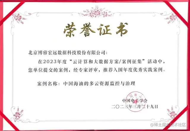 会上发布了年度案例征集首批成果,博睿数据案例“中国海油的多云资源监控与治理”荣获年度优秀实践案例称号。