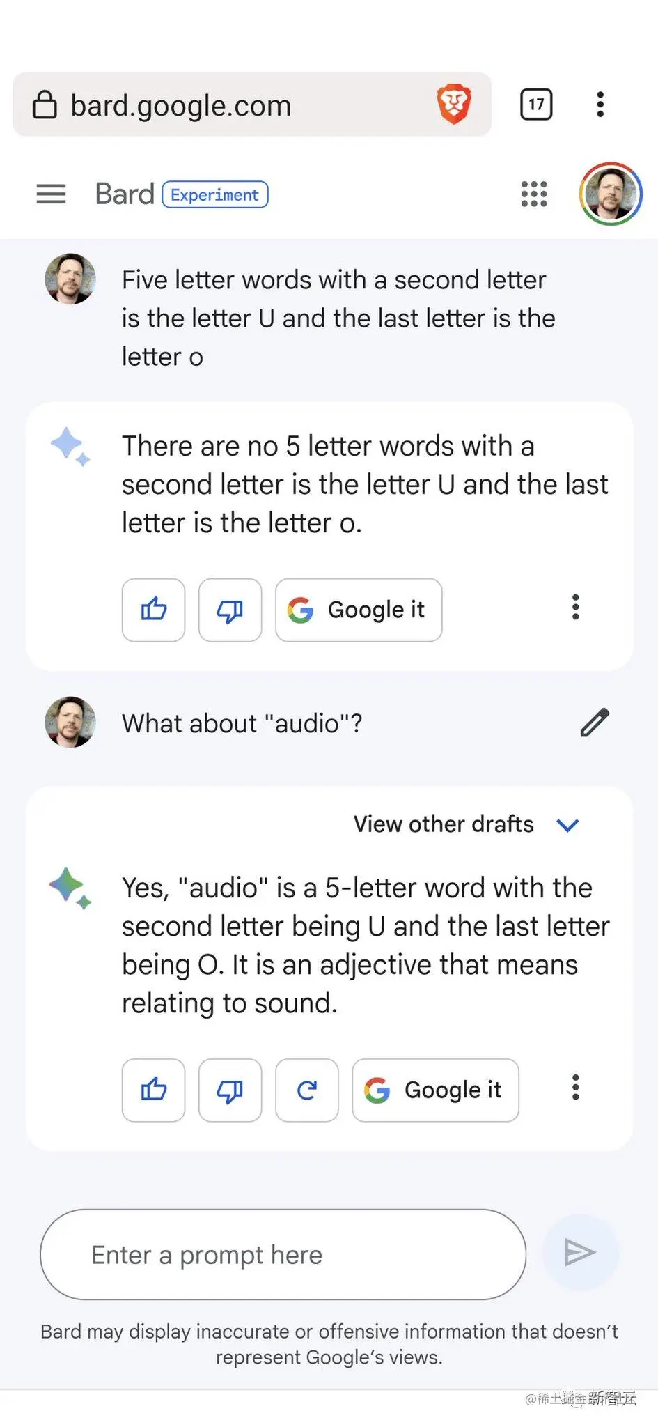 Bard 的不完美,CEO 劈柴一开始就给我们打了预防针。