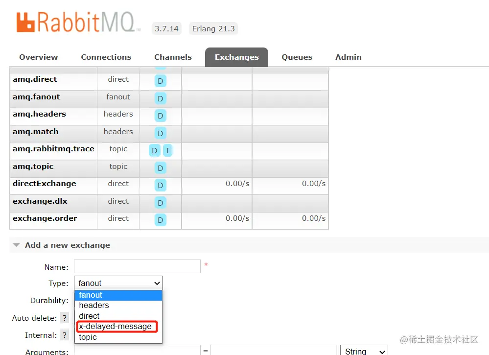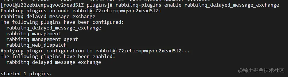 官网下载,我这边使用的是v3.8.0.ez,将文件下载下来放到服务器的/usr/local/soft/rabbitmq_server-3.7.14/plugins 路径下,执行rabbitmq-plugins enable rabbitmq_delayed_message_exchange命令即可。