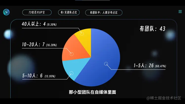 因此,团队化就成了过去几年视频创作行业的显著趋势,在接受Tim采访的百大UP主里,有一半以上都引入了团队协作,尤其科技区,全部选择团队模式,一个单干的UP主都没有。但团队人数越多,随之而来的人力管理成本,相应也就更高。