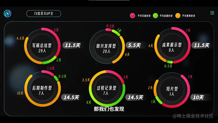 影视飓风的Tim,在年初采访收集了73位2022年百大UP主的工作流程。其中接近3/4的UP主,更新周期都不少于7天。很多人表示当自己想要转型和突破的时候,制作周期就会变得更长,甚至加剧更新压力。