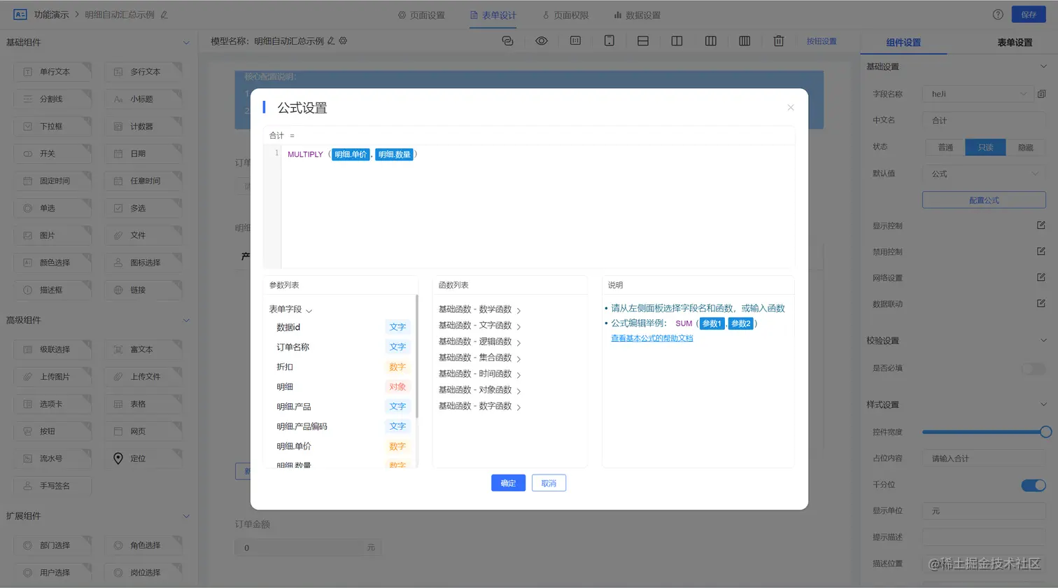 组件的结果可以依赖其他组件的数据与配置的函数公式获得,如下图所示,