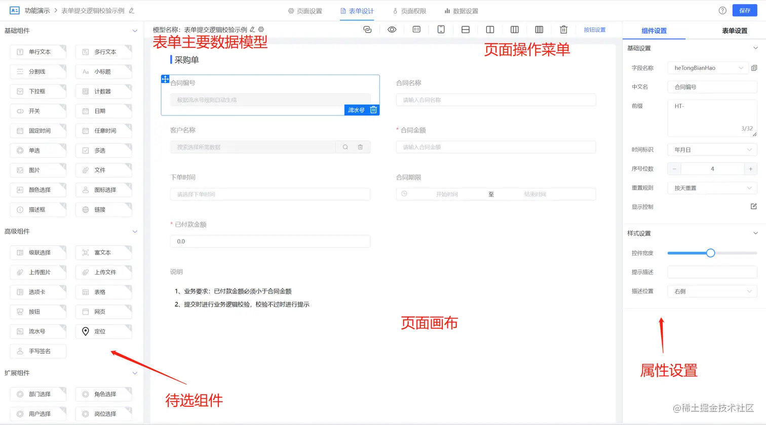 6.表单验证:不同低代码平台在表单验证方面也可能存在差异,包括验证规则、验证方式等。有些平台提供预置的表单验证规则,如必填、格式校验等,并且可以支持自定义验证规则;可联动逻辑进行复杂的业务校验
