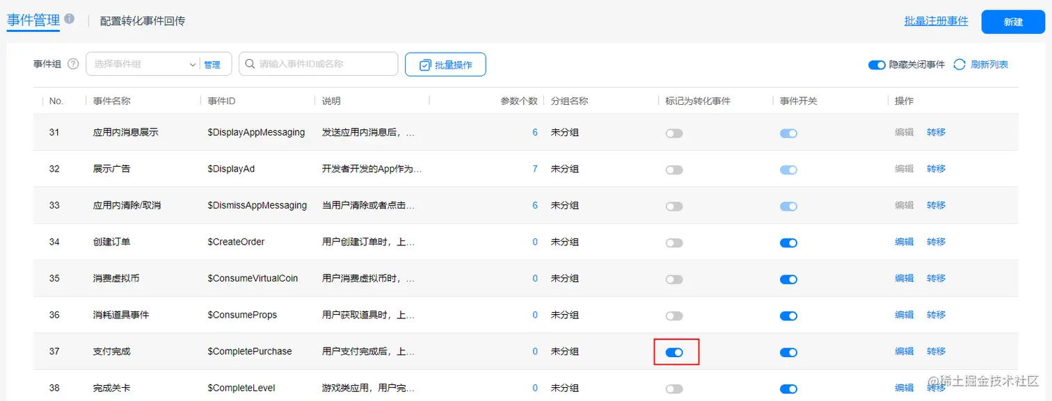 i. 预置事件注册方法请参考新建预置事件或自定义事件。