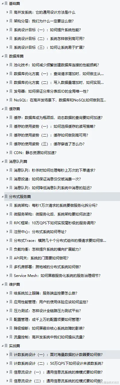 笔记从基础到实战再到源码,深入浅出高并发系统架构,并对当下互联网面试高频题做出了全面的汇总,借此机会文末还分享了一份阿里的高并发系统设计实录,但由于平台篇幅下面无法把全部内容为大家一一展示出来