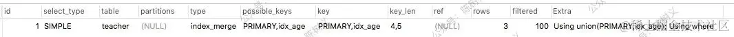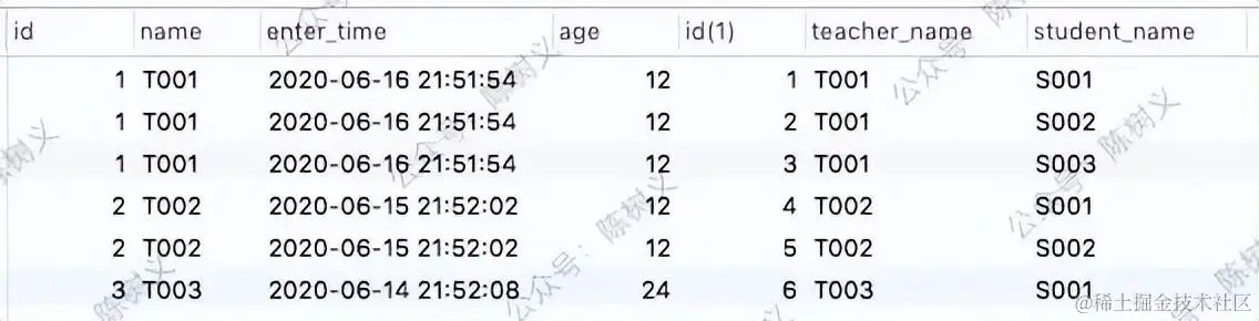 上面的输出一共有 2 条记录,其 ID 都为 1,这表示其归为一组。对于 ID 相同的组,MySQL 按照顺序从上到下执行,即:先拿 teacher_student 表的数据,再拿 teacher 表的数据。