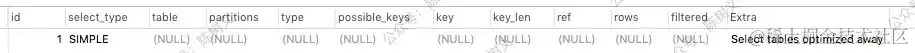 NULL 表示 MySQL 能够在优化阶段分解查询语句,在执行阶段用不着再访问表或索引。