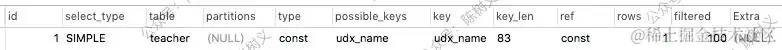 表只有一行记录(等于系统表),这是 const 类型的特列。