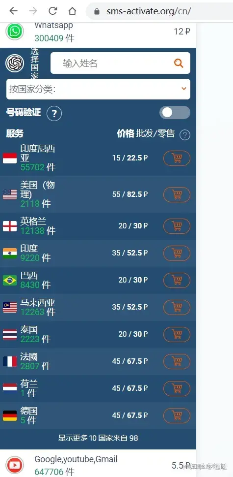 - 找一个国外手机号码,如果你没有用过接码平台也行,有些接码平台是无法接的,所以我们推荐一个就是 sms-activate.org
