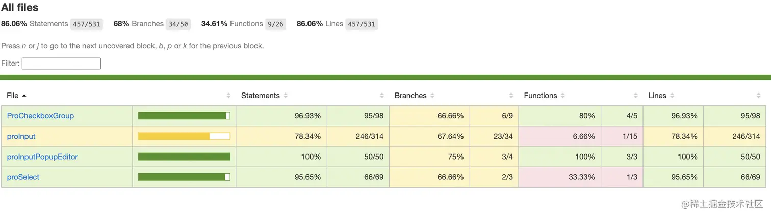 运行完测试覆盖率命令后在工程目录 kmui-factory/coverage 下查看产出结果