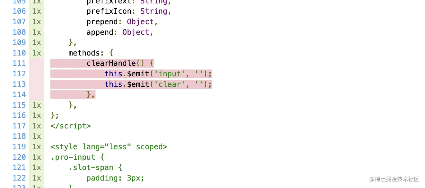 在这个case里面我们期望验证 proInput 组件中 suffixText 功能是否正常,思路就是如果组件正常渲染,应该在渲染结果中可以展示找到 addon 的文字内容,如第7行。如果为找到对应的文字 “addon ” 测试用例就会失败。
