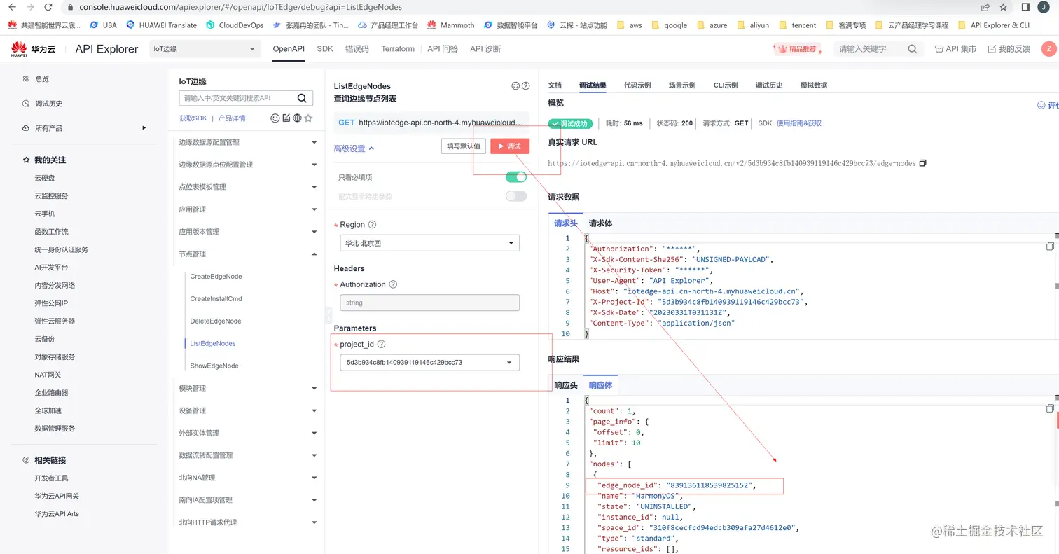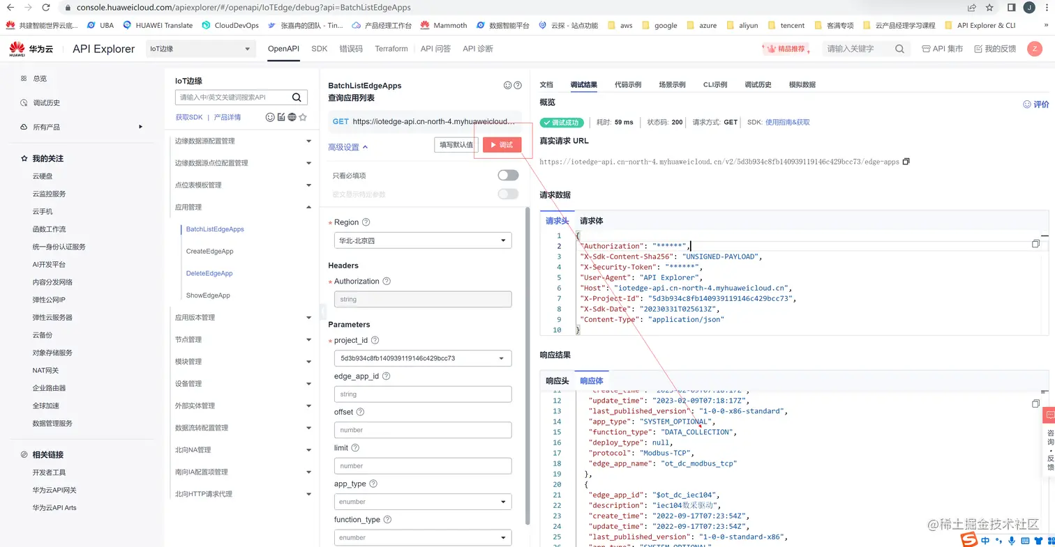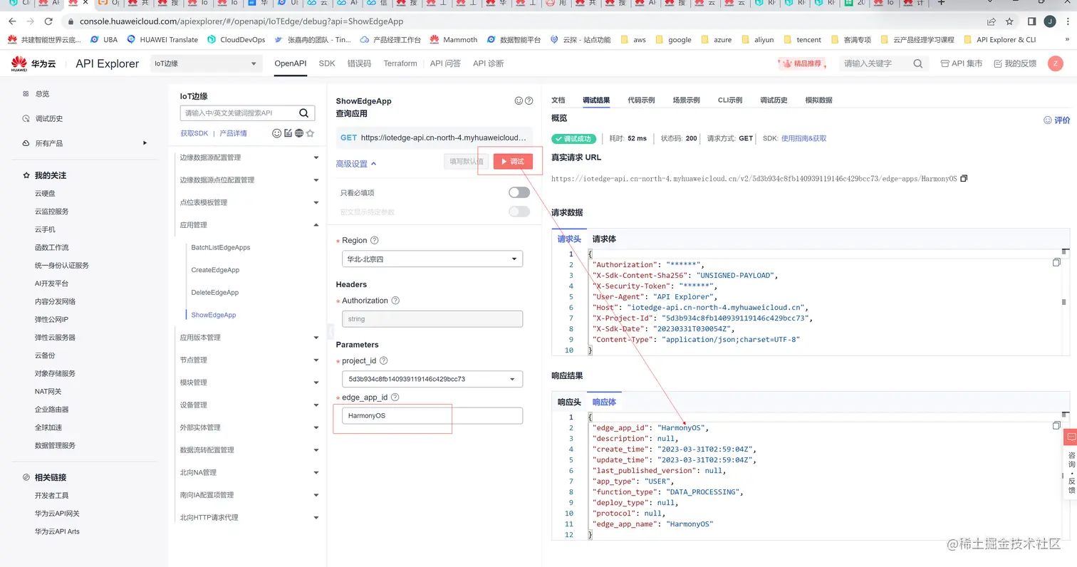 2、登录API Explorer IOT边缘服务调试界面(需要华为云账号登录):