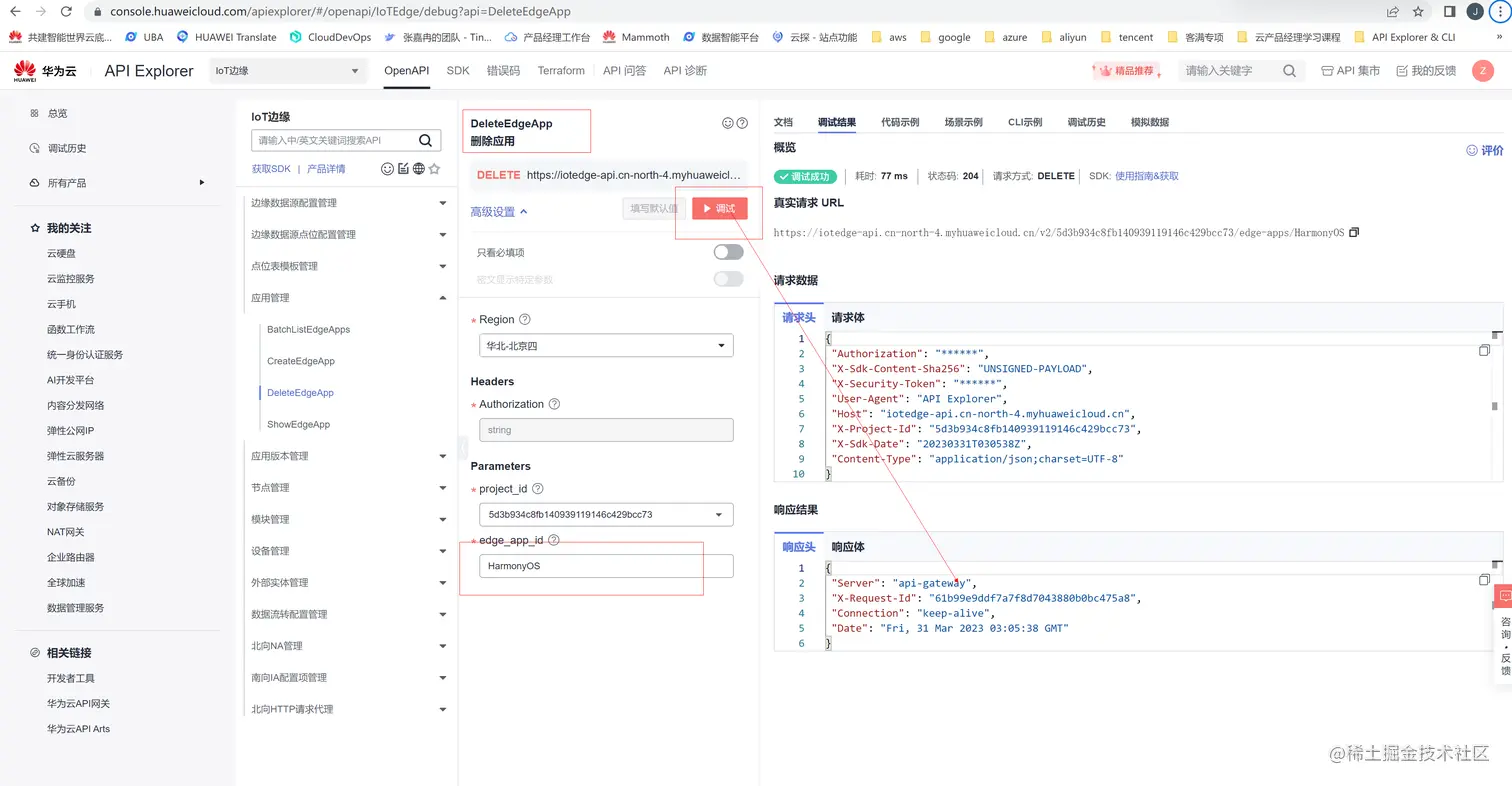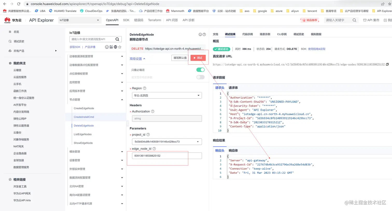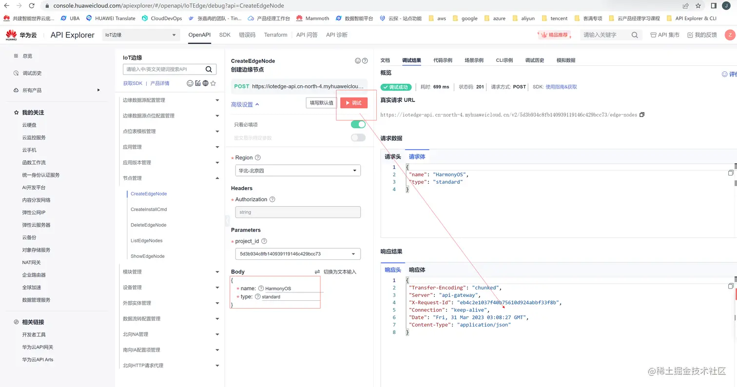 2、登录API Explorer IOT边缘服务调试界面(需要华为云账号登录):