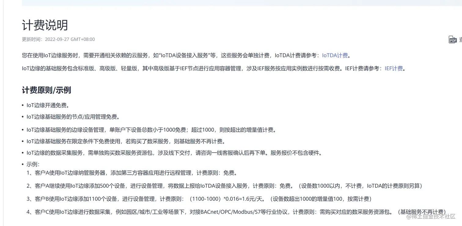 注:IoT边缘收费说明(有一定的额度,可以支持应用的创建):