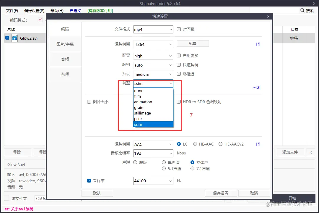 编码器预设了一些视频场景,便于编码为更高质量且视频大小合适的视频。