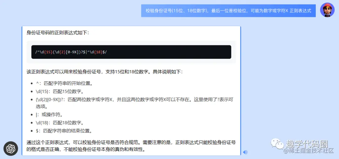 综合用下来,ChatGPT可成为辅助我们日常写代码、修改代码的一大助手。因为AI背后收集了大量的数据,所以在某些场景下,ChatGPT通过AI方式回答的内容体验已经超过相同问题在搜索引擎和社区的返回内容。