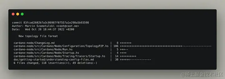 使用 --stat 标志,您将看到提交摘要以及更改的文件以及它们的详细更改信息。