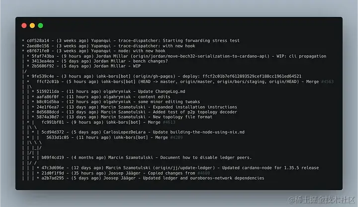 使用更多可视化的 git log 使用 --graph 和 --format 参数,我们可以快速获得项目中 Git 提交的摘要视图。