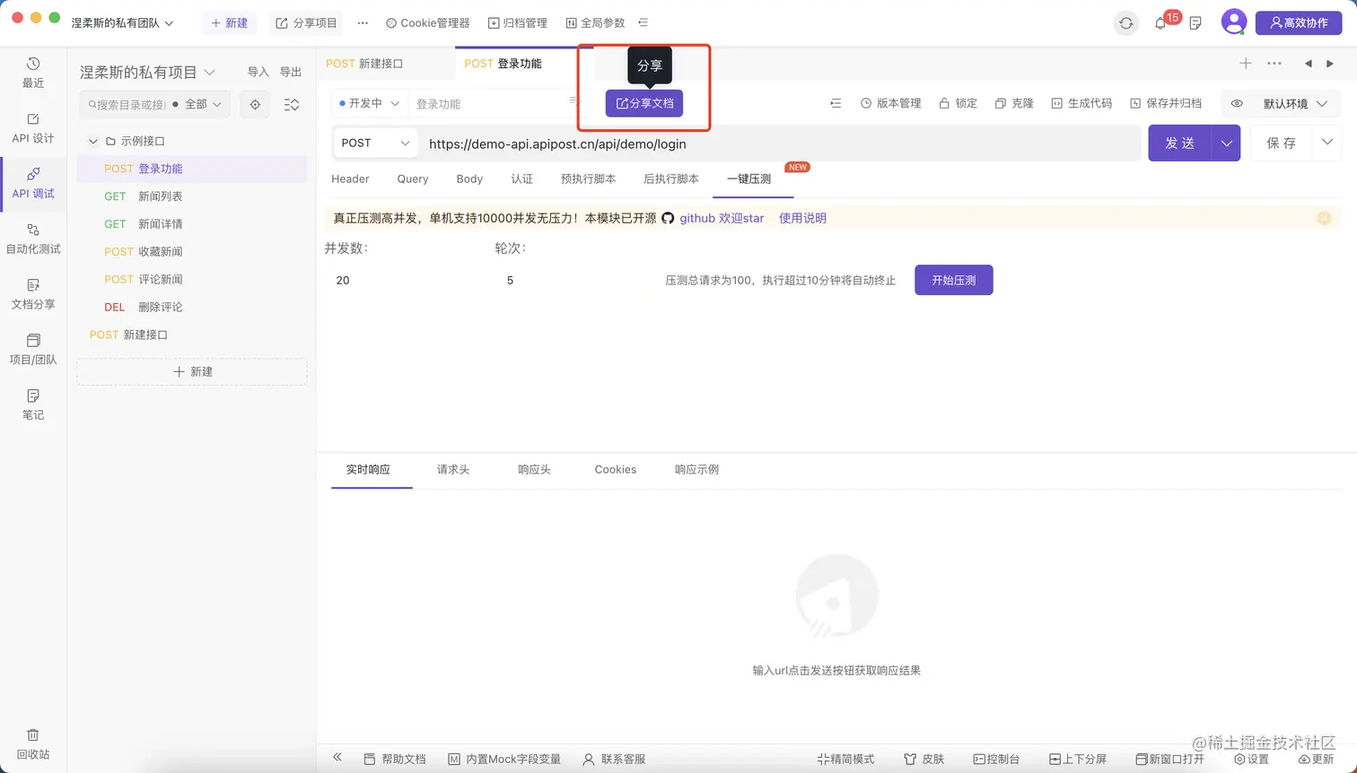 - 方便协作:Apipost的团队功能可以帮助团队成员更方便地协作,生成API文档、分享API文档,这样可以让团队成员能够更好地了解API的设计和实现情况,从而更好地满足业务需求。