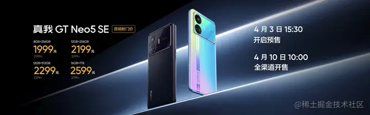 延续GT系列的旗舰基因,真我GT Neo5 SE以潮玩设计、越级性能、满血续航、满级内存再一次打动年轻消费者,将成为中端市场又一款竞争力拉满的“黑马神机”。 4月3日15:30,真我GT Neo5 SE在真我realme商城、京东、天猫等平台正式开启预售,首销射门价8GB+256GB版本仅需1999元,12 GB +256GB版本2199元,12 GB +512GB版本2299元,16 GB +1TB版本2599元,其中8GB+256GB的版本将在京东平台、真我realme官方商城开售。参与真我GT Neo5 SE预购可享受6期分期免息、30天无忧退换,并且赠送1年延保、1年碎屏保以及价值1400元的游戏礼包,4月10日全渠道正式开售。