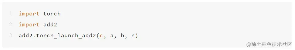 需要注意的是,这里我踩了一个坑,「.cpp和.cu文件名不要相同,也最好不要取容易与python自带库重复的名字」。此外要先import torch,然后再import add2,不然也会报错。