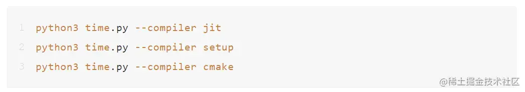 这里我实现了两个功能,代码都很简单,一个是测试时间,一个是训练模型。都可以通过参数--compiler来指定编译方式,可供选择的就是上面提到的三种:jit、setup和cmake。