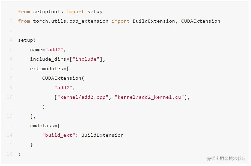 最后同样生成了一个动态链接库,不过python端我们不需要加载这个动态链接库,因为setuptools已经帮我们把cuda算子调用的接口注册到python模块里了,直接import即可: