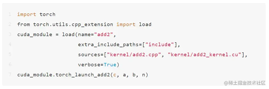 JIT编译的方法上一篇教程已经演示过了,只需要在python端添加load代码即可: