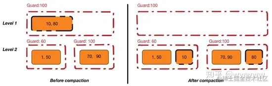 PebblesDB引入guard概念,guard之内的sstable可以无序,且key可以重叠
