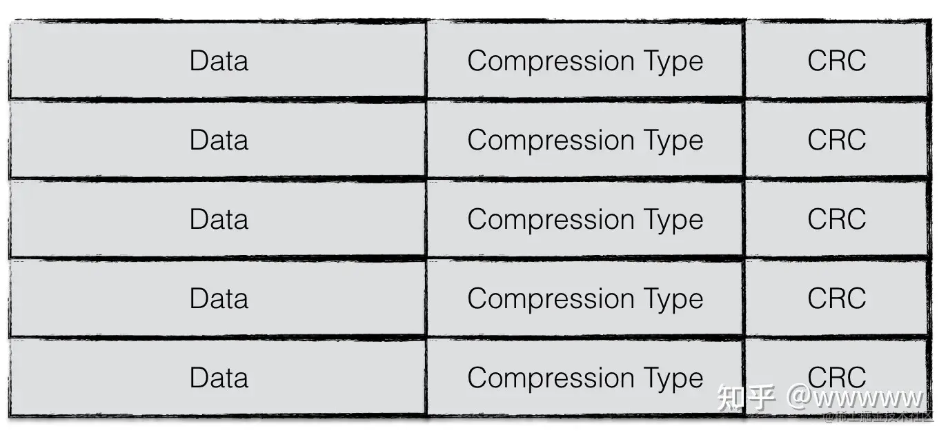 - 第二,为了在一个SSTable文件中寻找一对键值对,LevelDB需要读取多个数据块。如上面章节介绍的,SSTable文件由数据块(data block),布隆过滤器块(filter block),元数据块(meta index block)和索引块(index block)构成。具体来讲,从SSTable中寻找1KB大小的键值对,需要首先读取16KB大小的索引块,判断该数据所在的位置,然后读取4KB大小的布隆过滤器数据块,判断该数据是否存在,最后读取4KB大小的数据块,最多24KB数据。