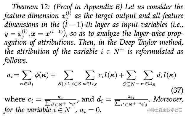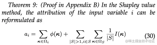 其中, 反映了将第 个输入单元的独立效应分配给第 个输入单元的比例, 表示将集合 内多个输入单元间的交互效应分配给第 个输入单元的比例。众多归因算法的“根本区别" 在于, 不同归因算法对应着不同的分配比例 。