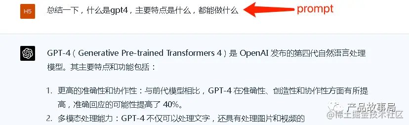要解答这个问题,首先需要了解一个新概念:提示(prompt) ,即与ChatGPT进行交流时,用户输入的内容。“提示”可以是一个问题、一段文字描述,甚至可以是带有一系列参数的文字描述。AI模型会根据“提示”所提供的信息,生成对应的文本或者图片。熟练地使用“提示”在五年之内绝对会成为产品经理的必备能力。