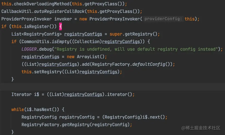 2、其次获取所有的RegistryConfig,如果获取不到注册的地址,那么就会走默认的注册中心地址:“i.jsf.jd.com”。