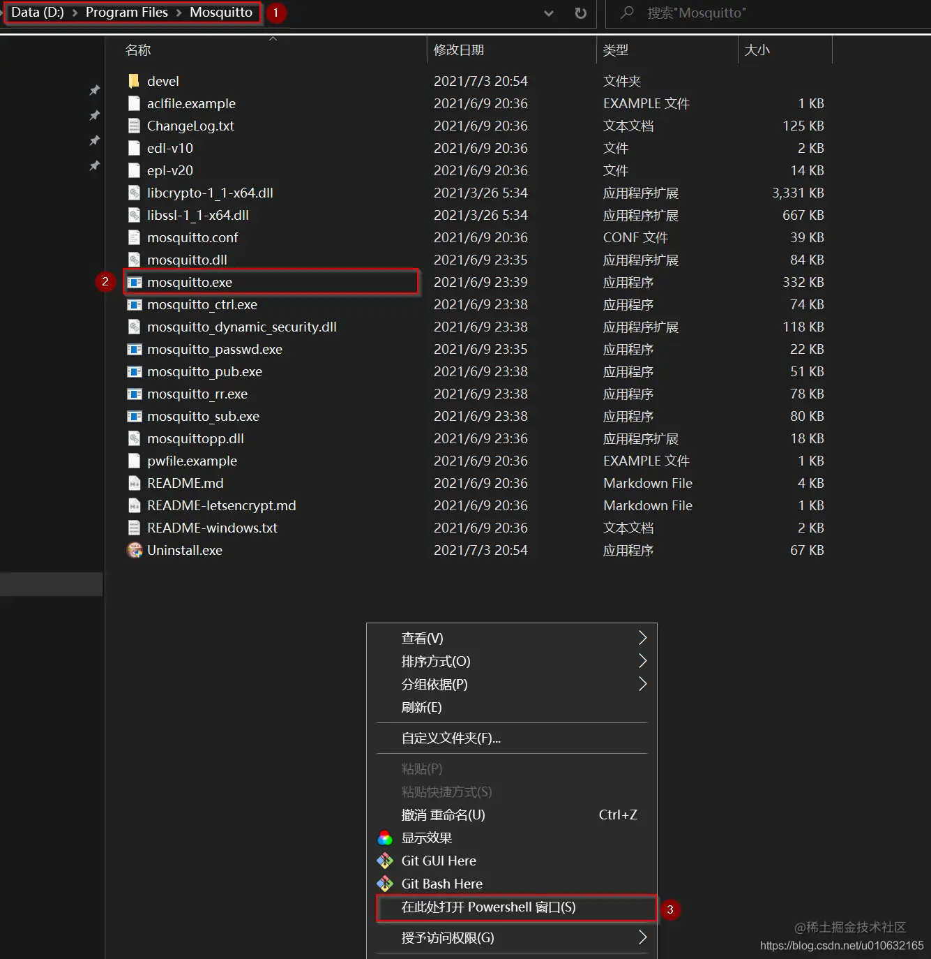 安装成功之后,进入到安装路径下,找到mosquitto.exe;