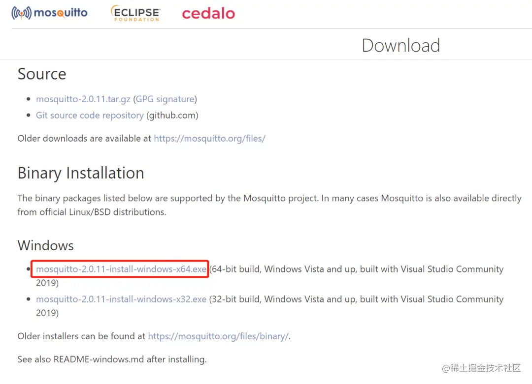 本文将使用 Mosquitoo 进行测试,进入到安装页面,下载自己电脑的系统所适配的程序;