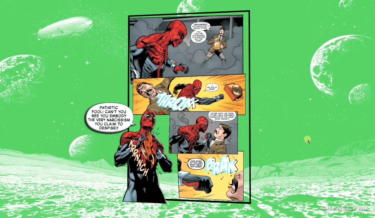 实现效果如 👇 下图所示:页面主要有背景图、漫画图片主体以及 💥 Boom 爆炸背景图片构成,按住鼠标左键移动模型可以获得不同视图,让图片在视觉上有 3D 景深效果。
