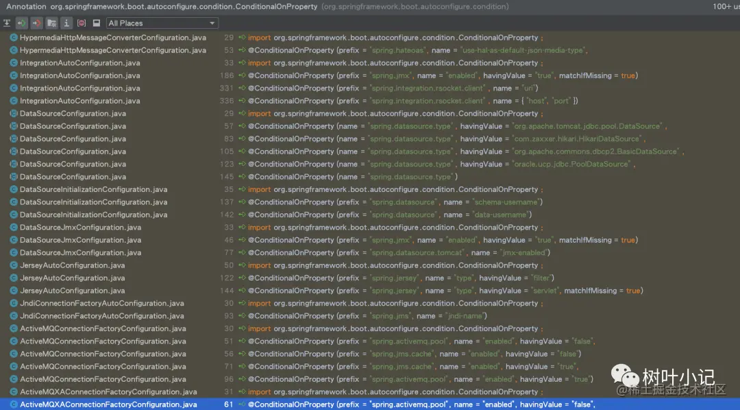 通过@ConditionalOnProperty注解,很快能定位到它是位于 autoconfigure模块的特性。**