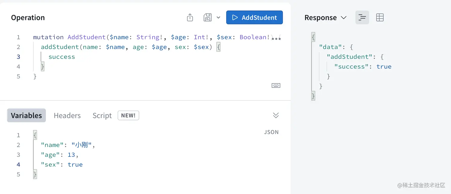 addStudent(name:String! age:Int! sex:Boolean!): Res