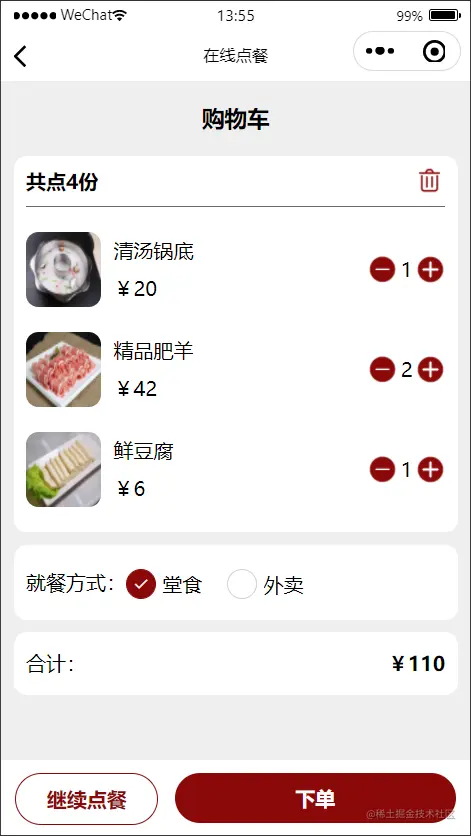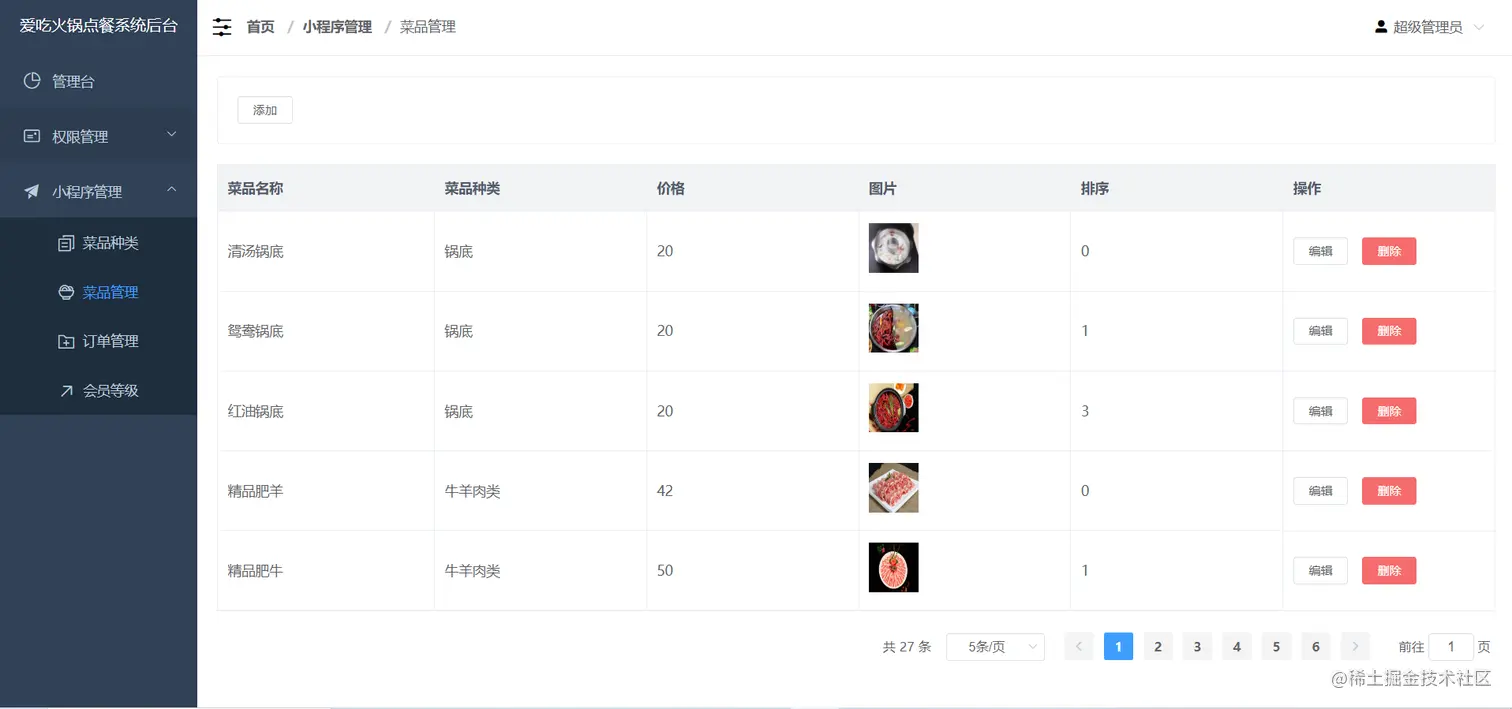 爱吃火锅点餐小程序由小程序端和管理端构成。