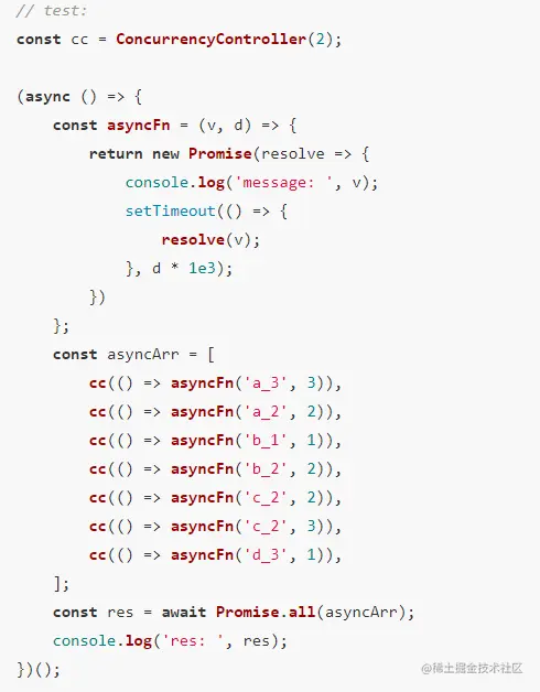 到这里,我们就已经实现好一个并发控制器了,接下来,我们整点数据测试是否正常跑起来。简单的加一些setTimeout来处理一下。