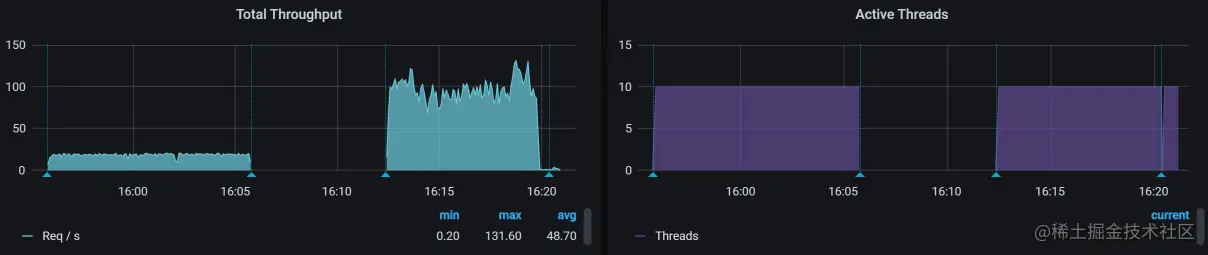 因1个压力线程大概产生20 TPS,从TPS曲线看还是上升较快,所以考虑把Duration(场景的持续时间)放长,让压力不要增加太快,而在这缓慢增加过程中观察曲线变化,以判断后续动作及最大容量。我会这样来确定场景的加压过程。