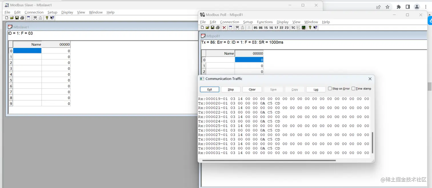 - Modbus Poll(Master):模拟主机发送数据