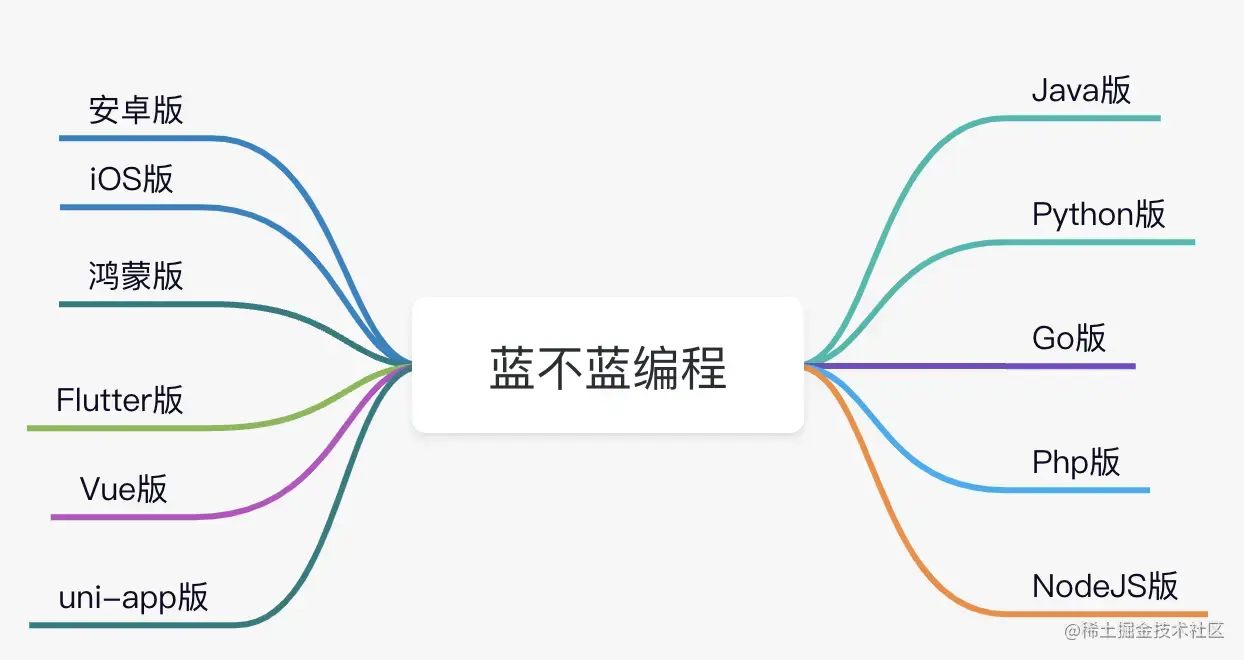 左侧为前端版本:安卓、iOS、鸿蒙、Flutter、Vue、uni-app。
