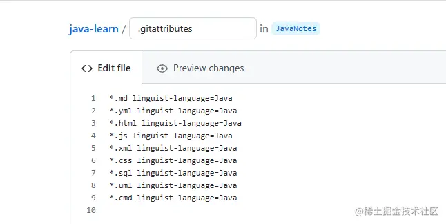 所以你需要去查询你项目中所有尽可能的后缀名文件影响语言的情况考虑,当然也可以在.gitattributes文件中添加多一些属性就解决了;