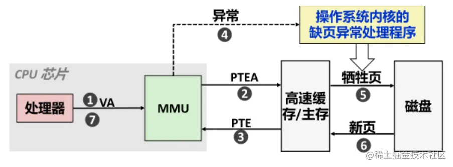 1)先探讨第一个问题,关于缺页中断的原理,属于计算机组成原理的范畴,这里不展开详细介绍,大概流程可以参照下面这张图: