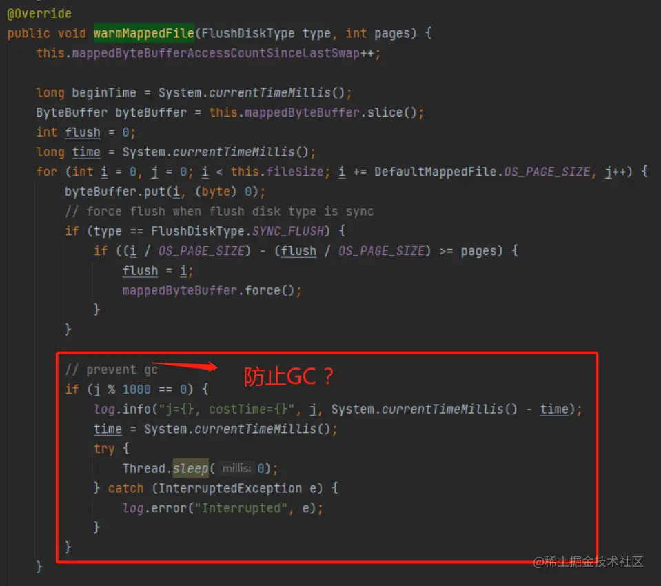 代码出处:org.apache.rocketmq.store.logfile.DefaultMappedFile#warmMappedFile